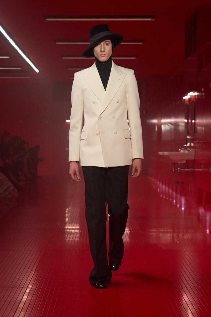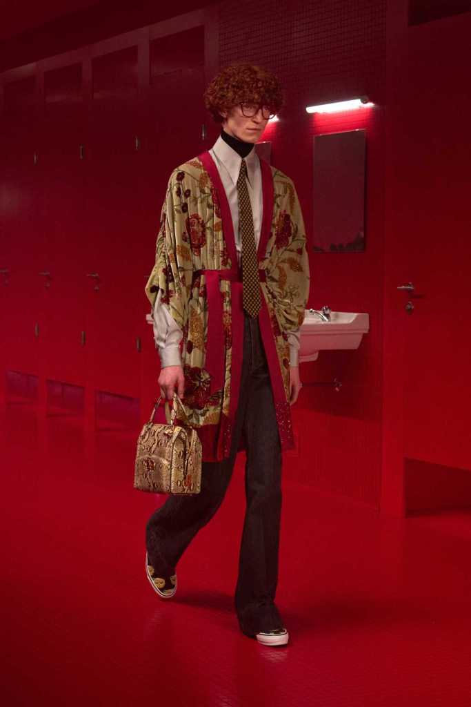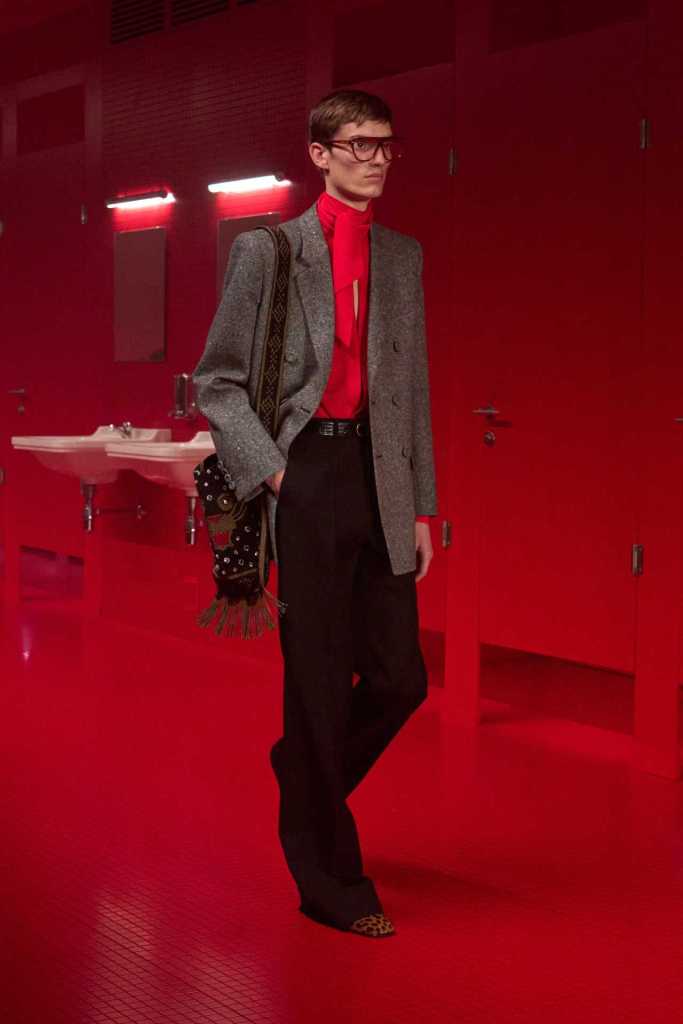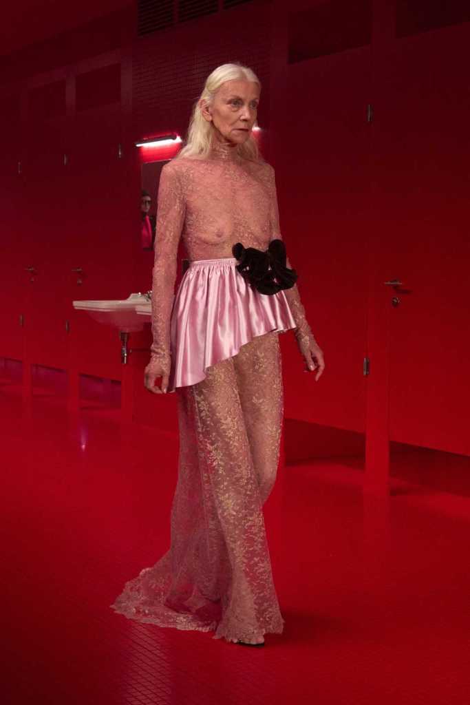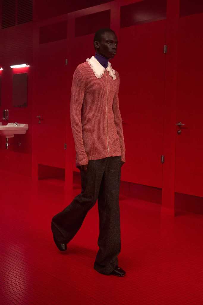 The bathroom setting acted as an equaliser, where models emerged both vulnerable and empowered, mirroring the fluidity of identity. The space, described by Michele as “a counter-place that suspends the dualism between inside and outside,” echoed his commentary on the dissolution of boundaries between public and private life in the age of social media.