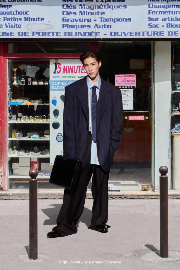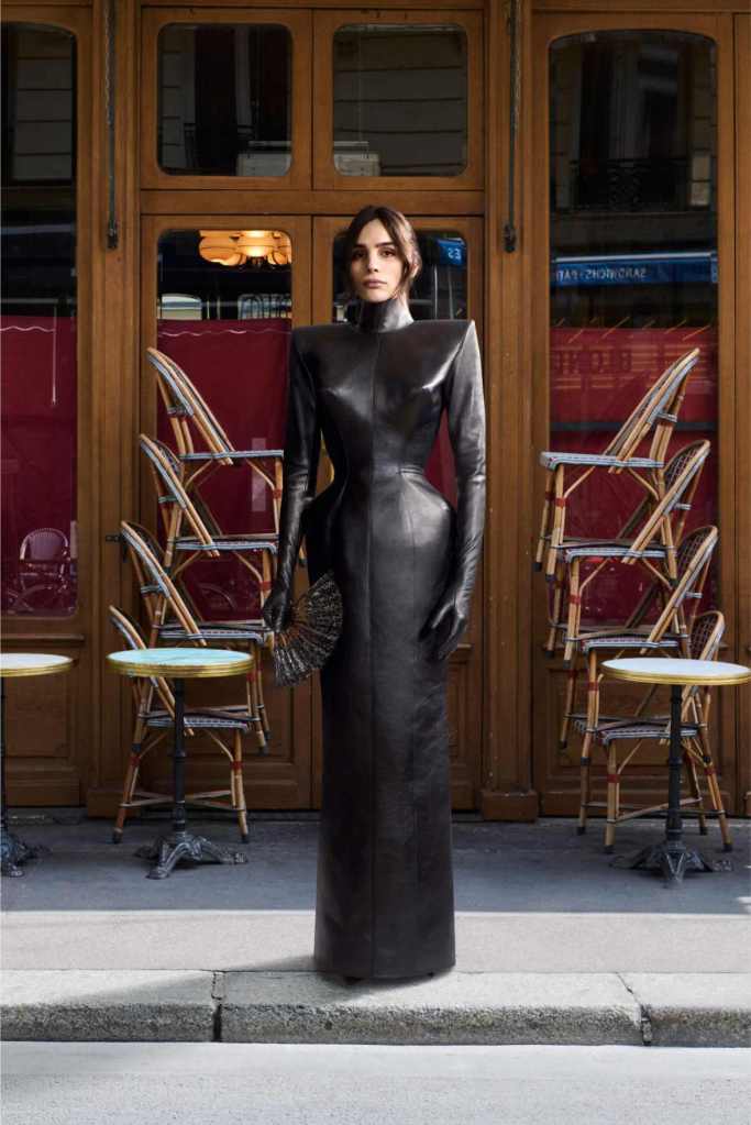 The men’s looks, another Demna invention in the house’s couture history, were peak him: exaggerated, experimental, and grounded in his personal wardrobe. The final images weren’t taken in a grand salon but on the streets of Paris—next to hardware stores, by the Seine, and in front of Balenciaga’s original house.