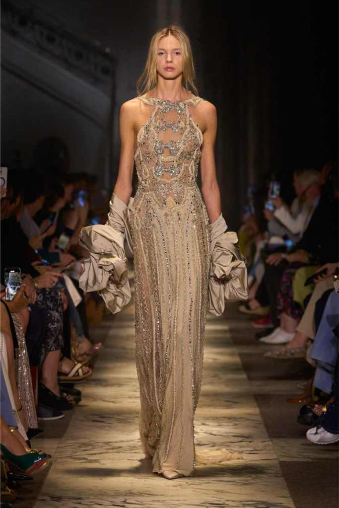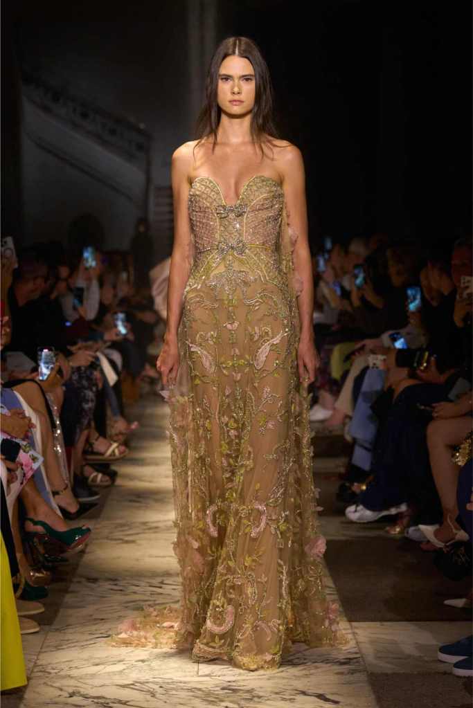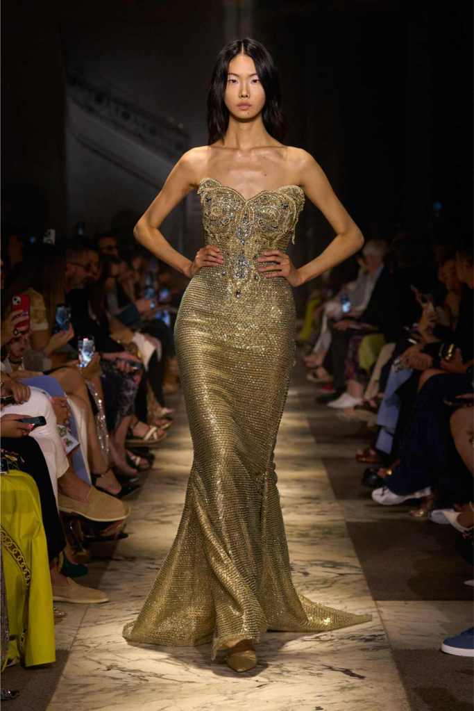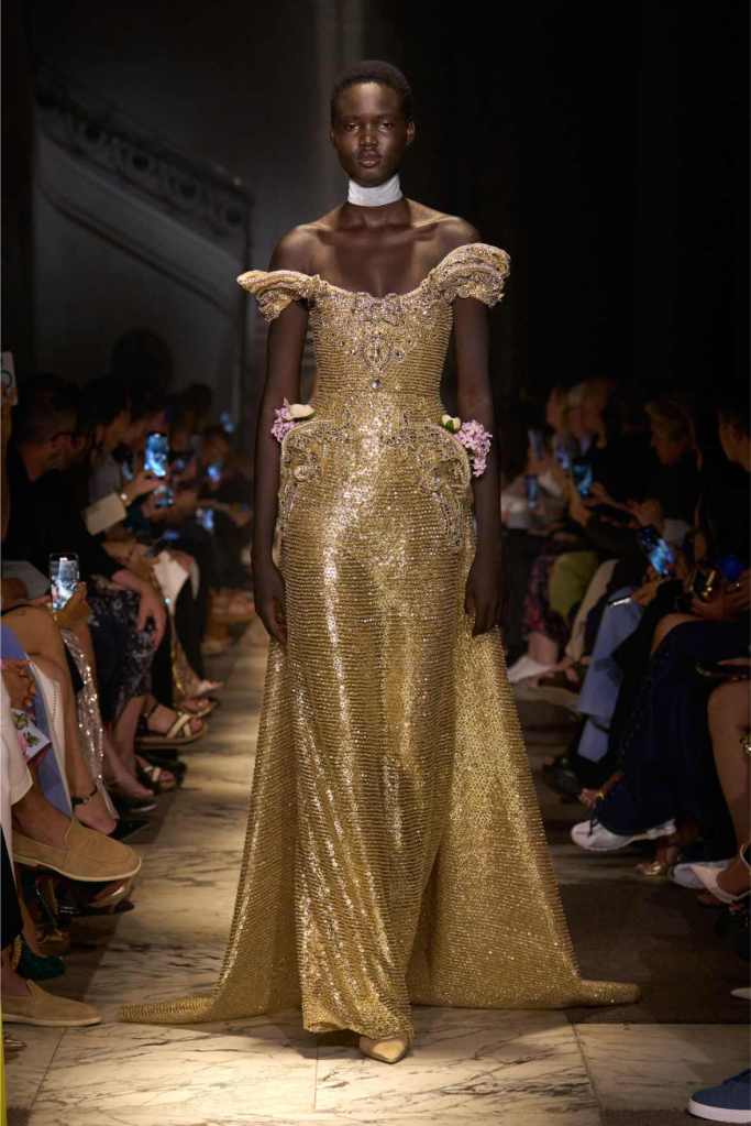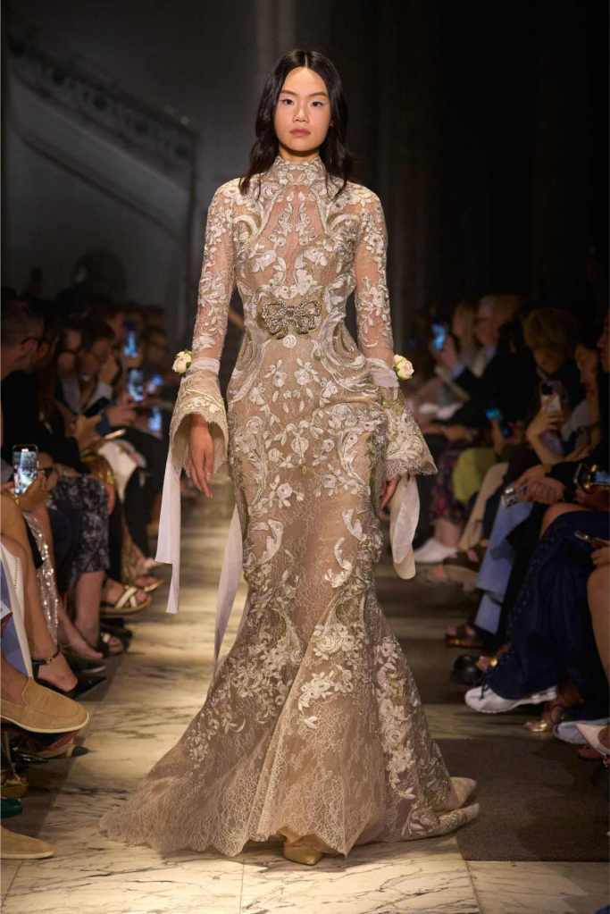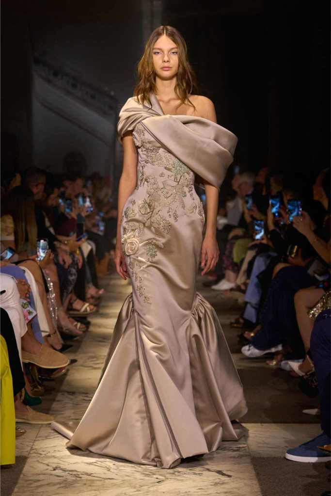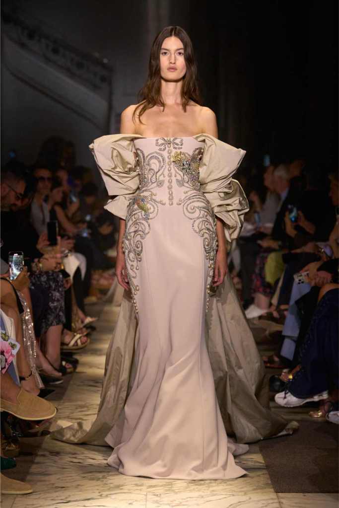 Inspired in part by a rewatch of Sofia Coppola’s Marie Antoinette, the show felt playful and cinematic—underscored by the soundtrack’s cheeky use of “I Want Candy.” And candy it was. Think flowing capes, poufed skirts, delicate lace, and bugle-beaded florals—all crafted with Saab’s signature finesse. Every detail was meticulous, from knotted duchess satin to feathered pyramid gowns. French fabrics, antique techniques, and light padding gave volume without stiffness—showcasing just how far Saab’s craftsmanship can go. It’s not everyday errands Saab dresses for—it’s the moments that call for a little magic.