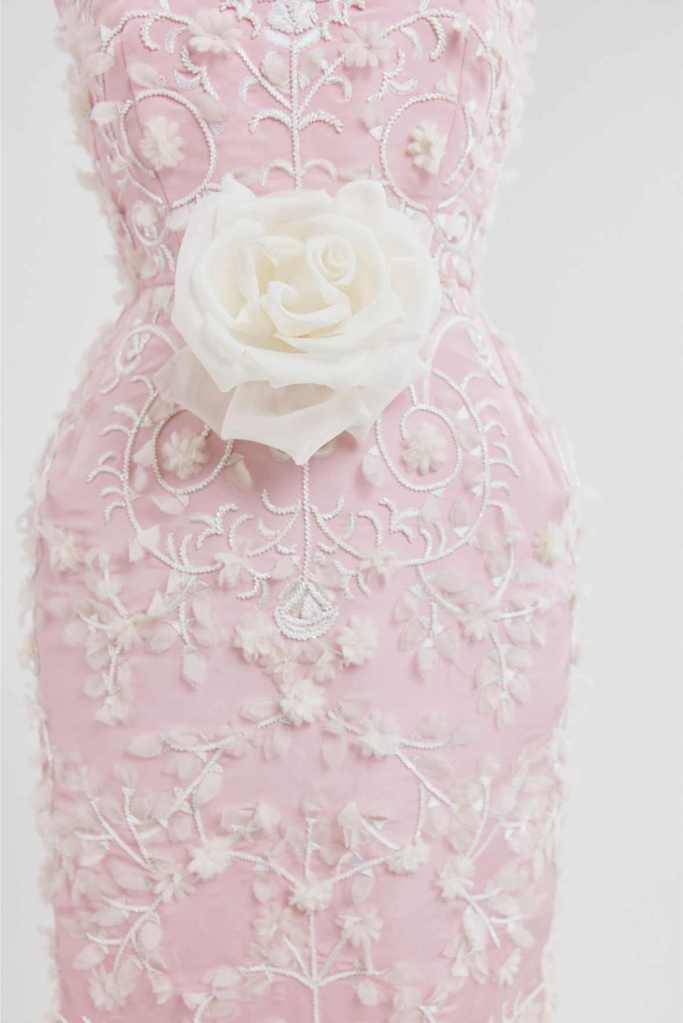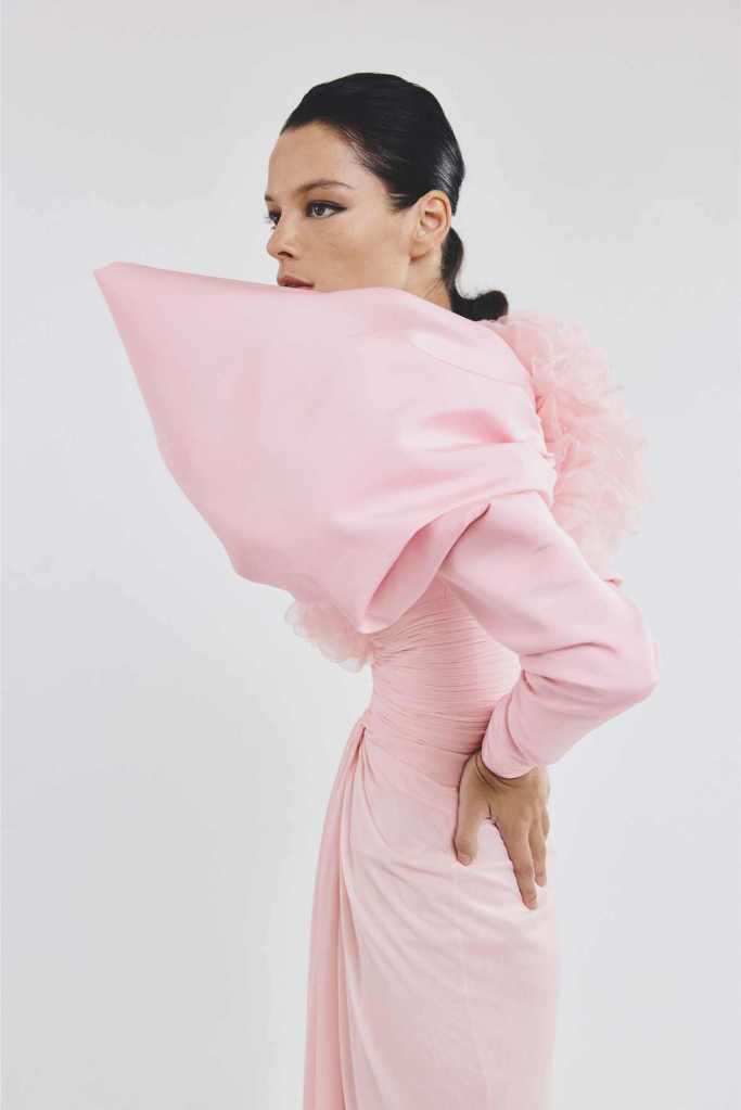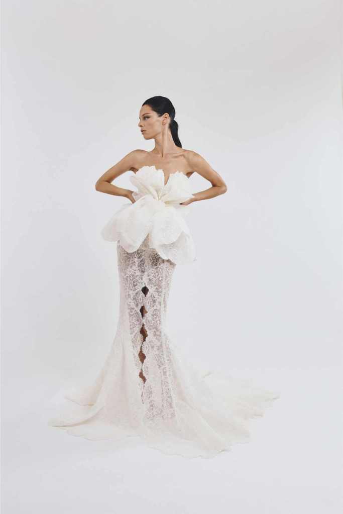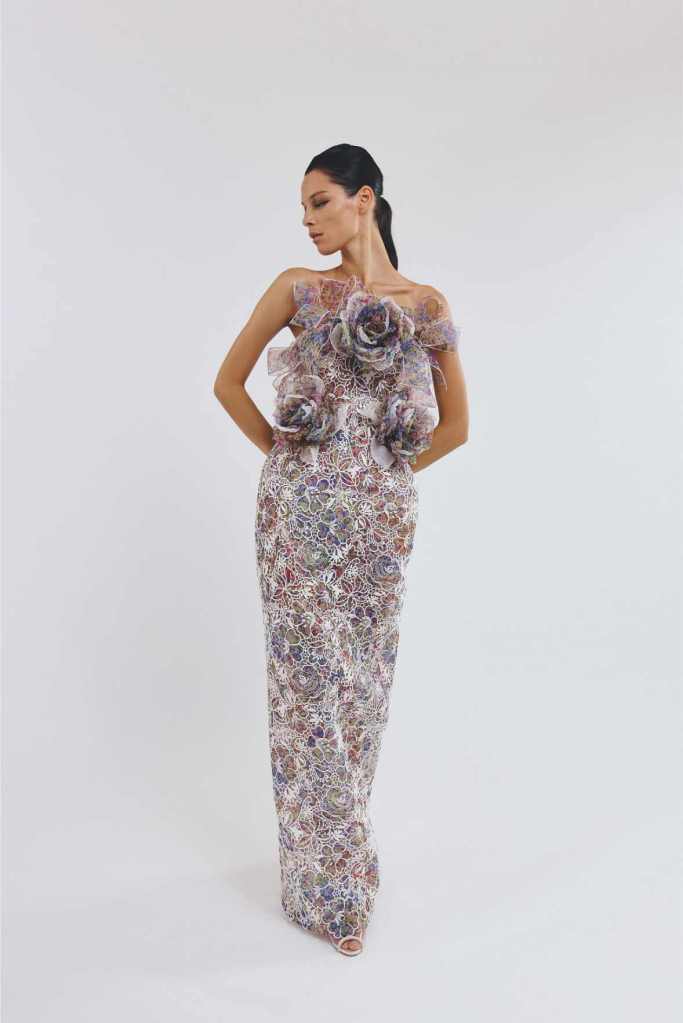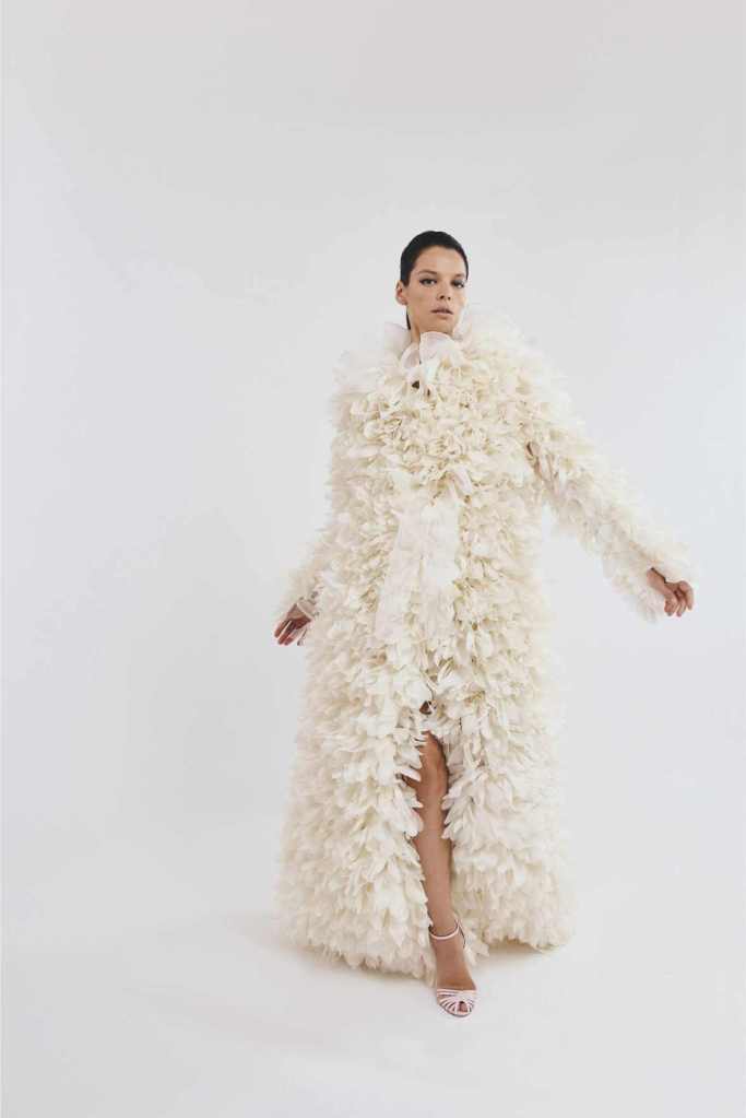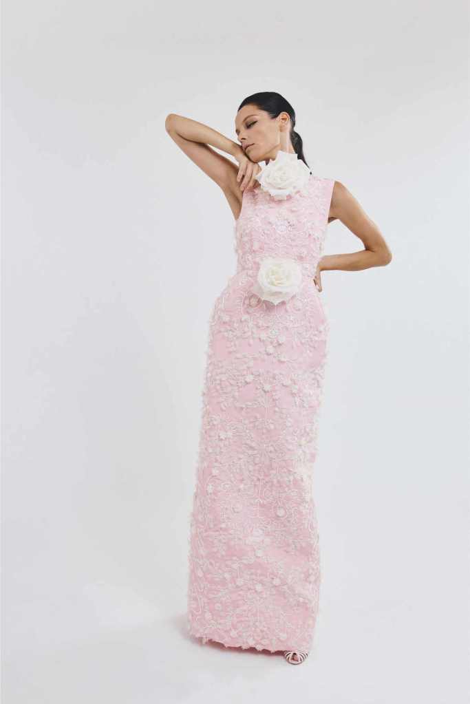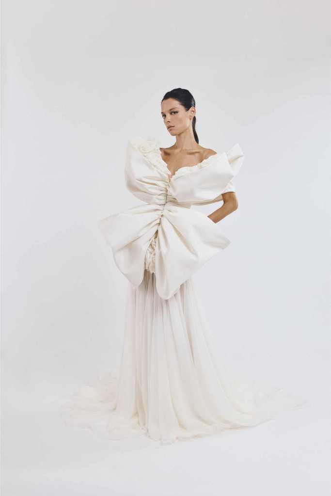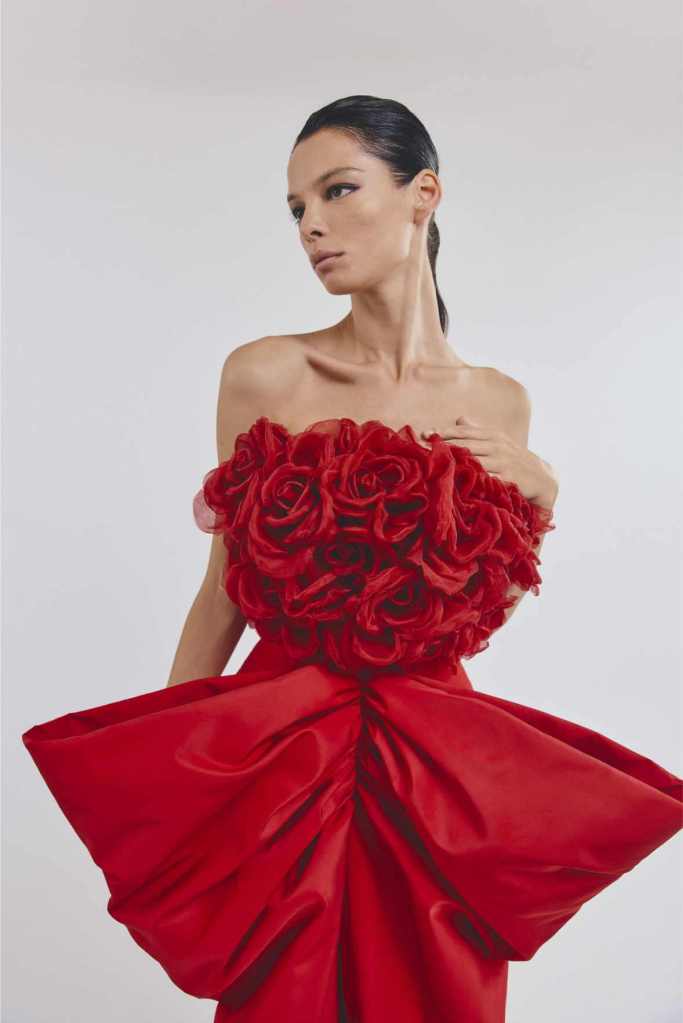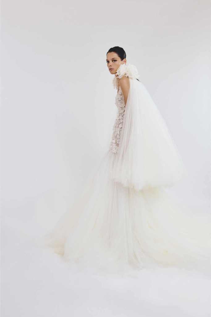 Instead of a traditional runway show, Valli displayed his creations on mannequins so guests could really take in every detail. And honestly, it was worth the pause. The pieces were full of what Valli does best—romance, elegance, and those floaty, feminine shapes that feel like a breath of fresh air. There were layers of soft tulle, delicate pleats, and floral touches so intricate they looked like they were plucked straight from a garden. One bodice had tiny flowers that looked like feathers—but surprise, it was actually silk organza.
