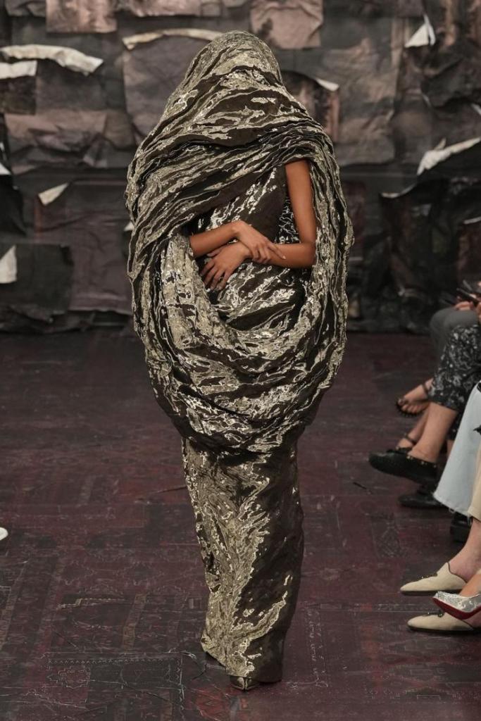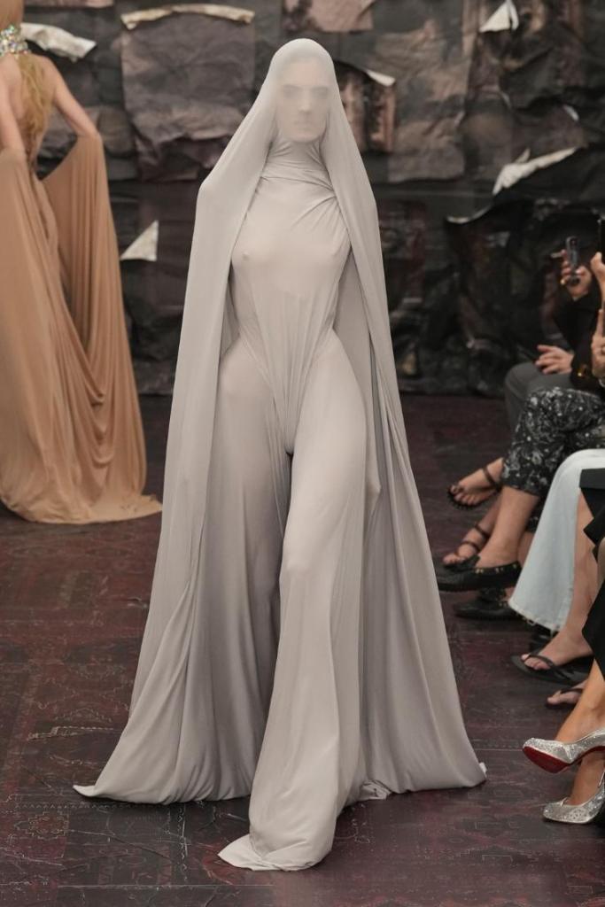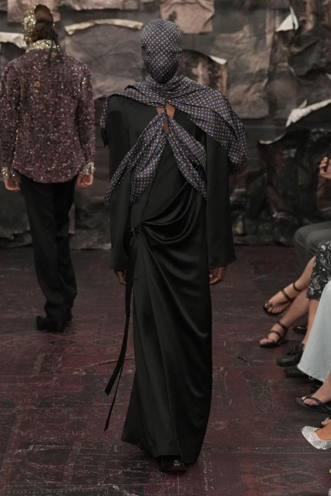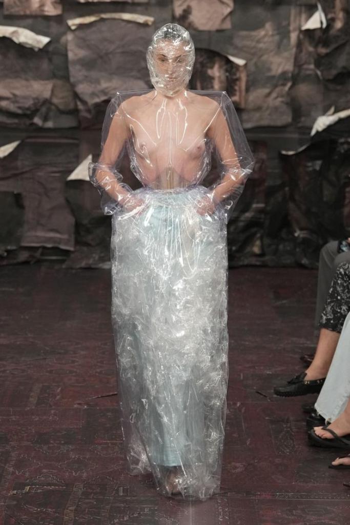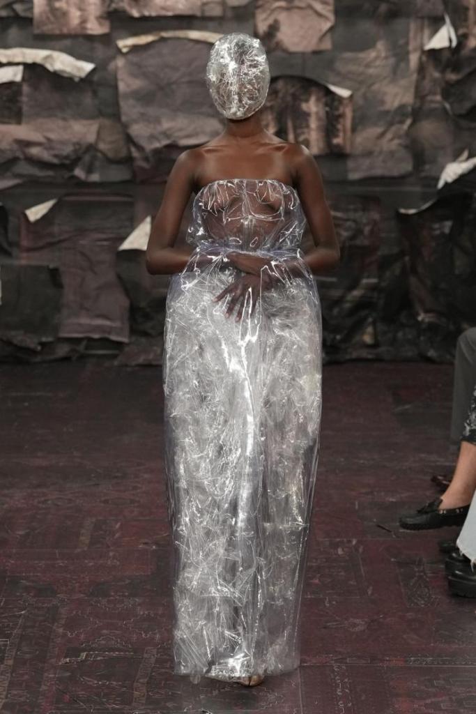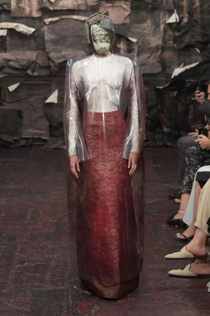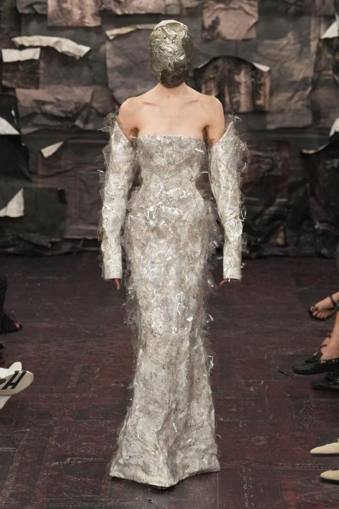 There was a strong nod to the past—clear plastic garments recalled Margiela’s ‘90s collections, while the heavy use of upcycled materials paid tribute to the brand’s founding principles. But this wasn’t nostalgia. It was reinvention. Martens’s mastery of draping, structure, and silhouette gave the whole show a future-facing edge. The ghostly jersey gowns, especially, were unforgettable—haunting in their beauty and strangely tender.