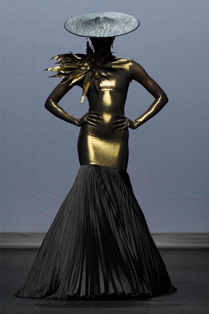 Wun has always loved the eerie and theatrical, but Becoming felt especially personal. It wasn’t about shocking the audience—it was about showing us how clothes hold stories. The final look—a soft blush gown topped with a doll-like mannequin—was haunting and tender at once.