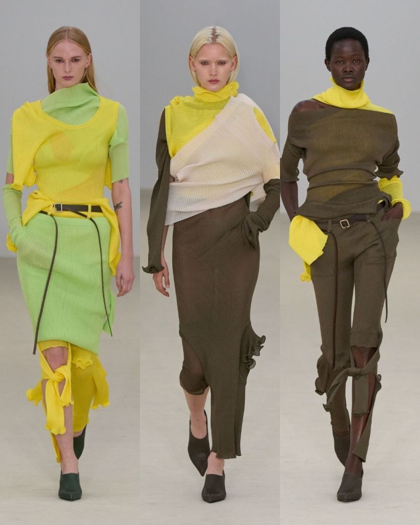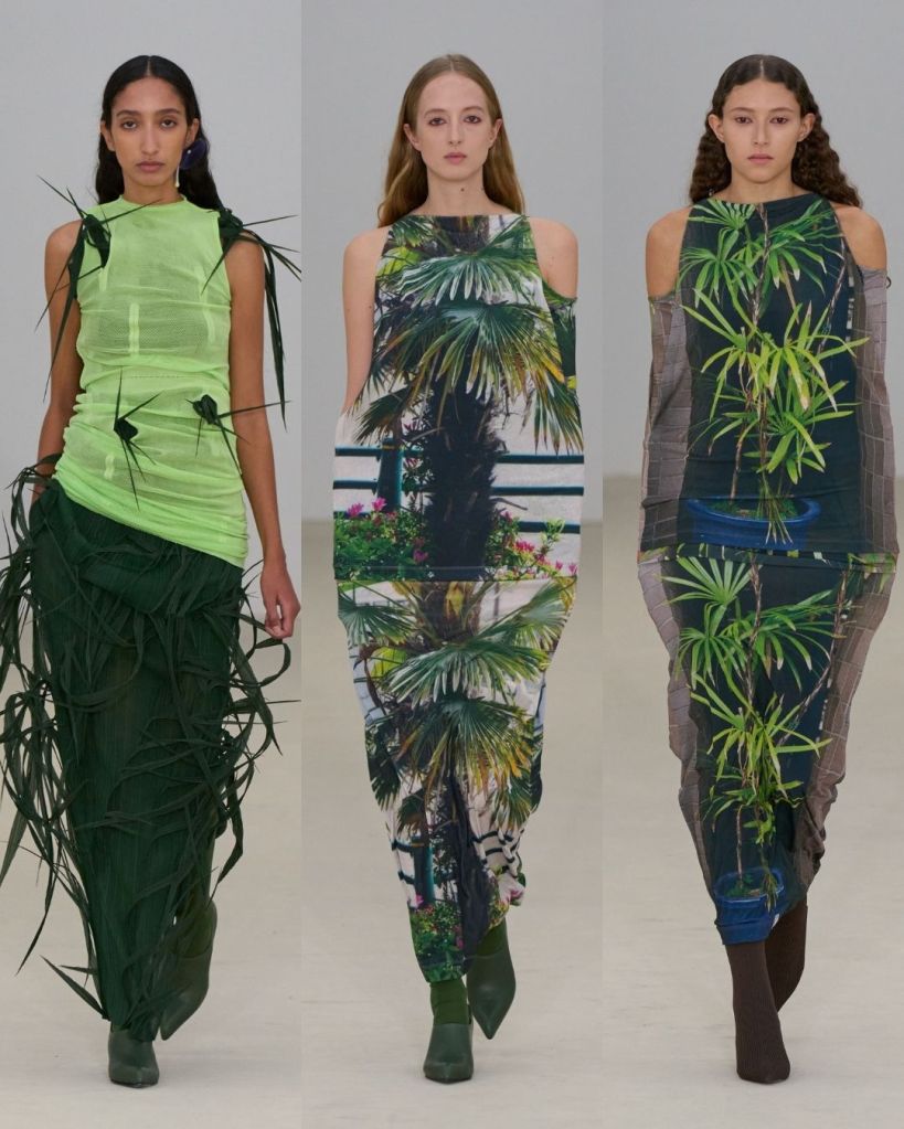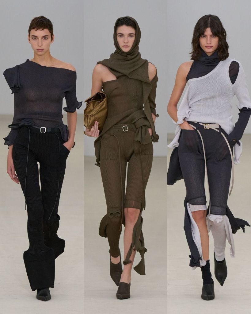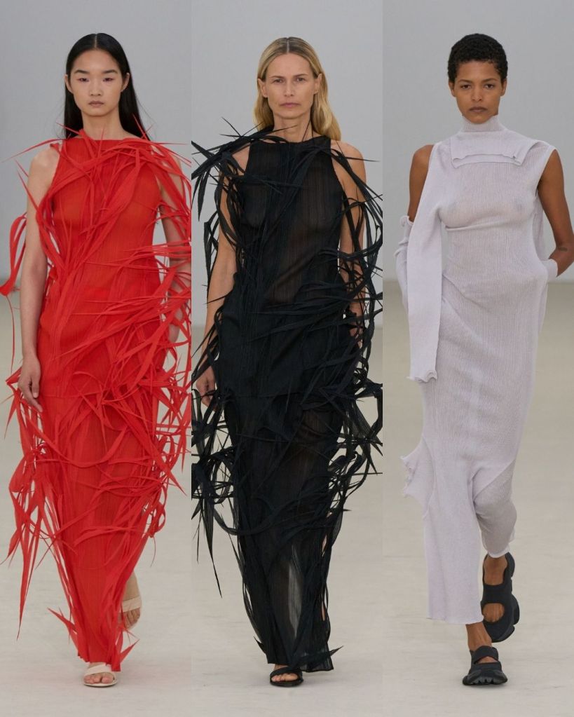 Very sculptural, very inventive. Interesting garments would be the least to say. The whole thing felt organic and a little alien-like, like something growing out of the earth in slow motion. The styling was layered, structured yet soft, and slightly dystopian. But not in a dark way. More like a glimpse into a future that’s learning how to live again, a dystopia on the rise.