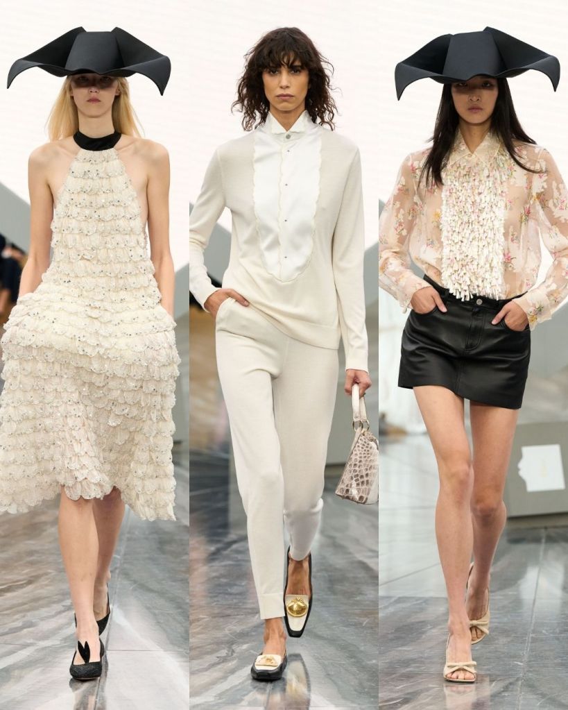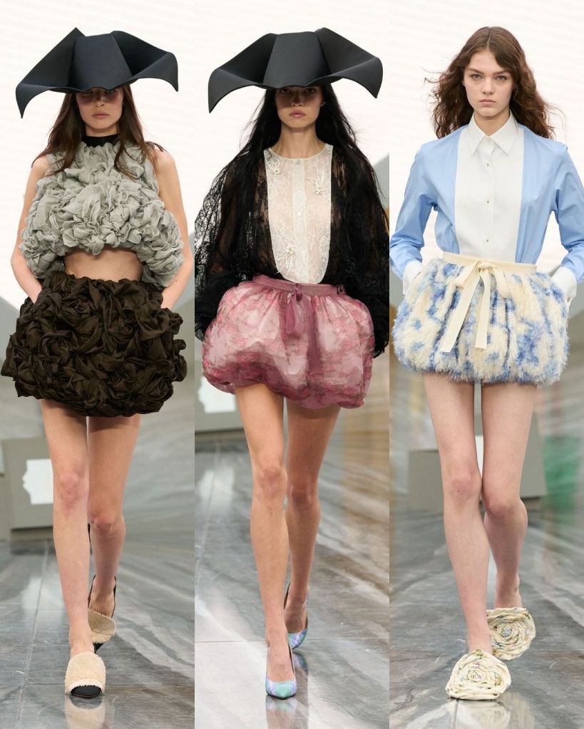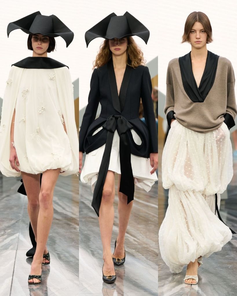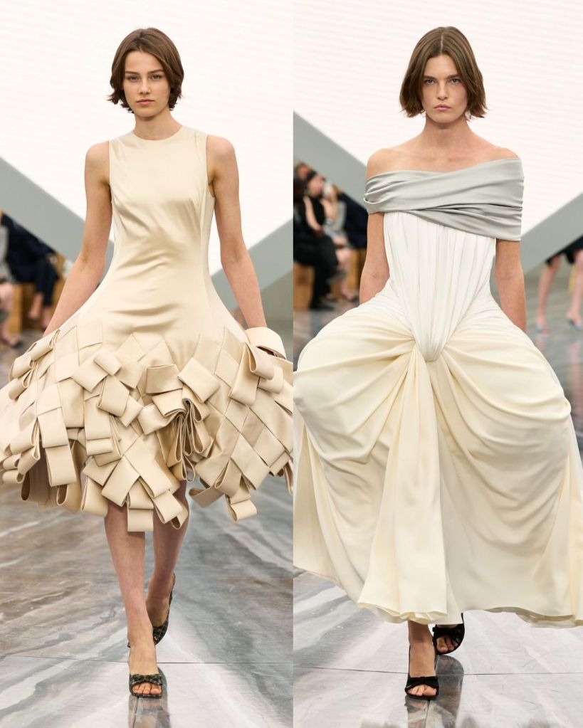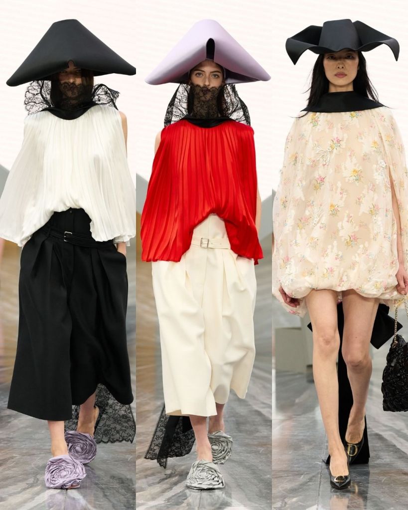 Accessories and details reinforced this balance. Avant-garde footwear, delicate bows, pastel macrocannage bags, and origami-inspired headpieces amplified Anderson’s vision without overwhelming it. The collection felt like an exercise in “boxing and unboxing” history, where the past is handled, rearranged, and allowed to re-emerge selectively.