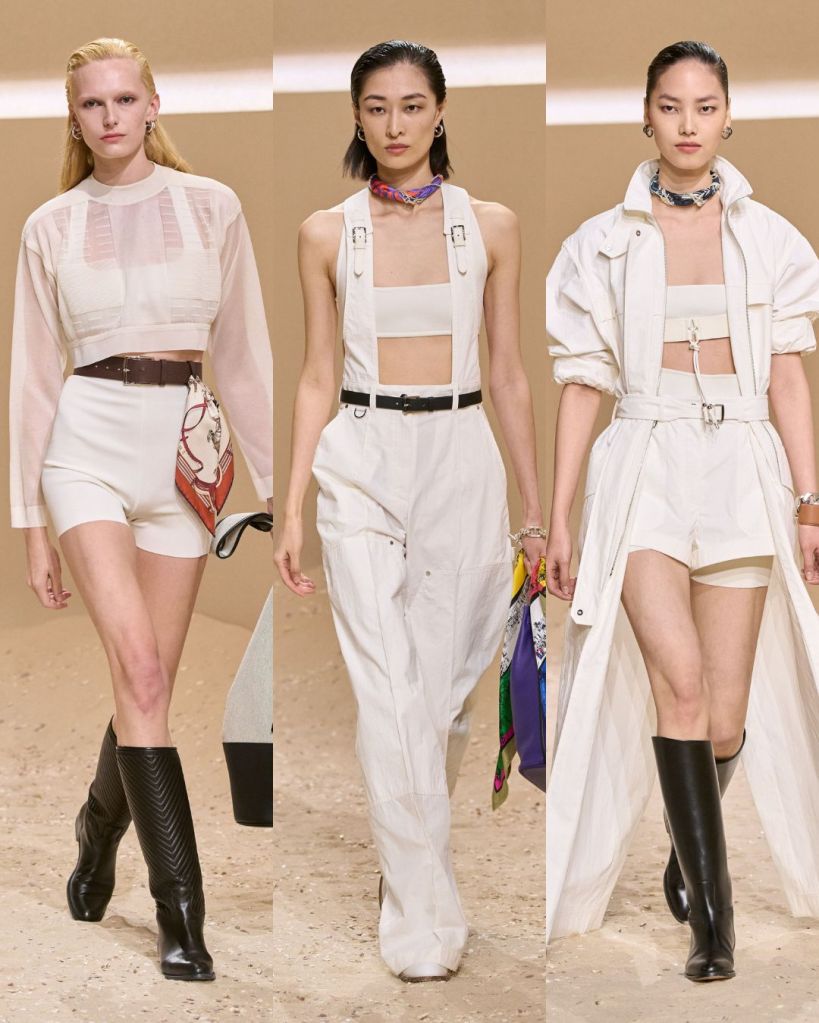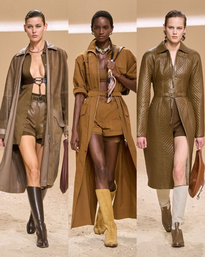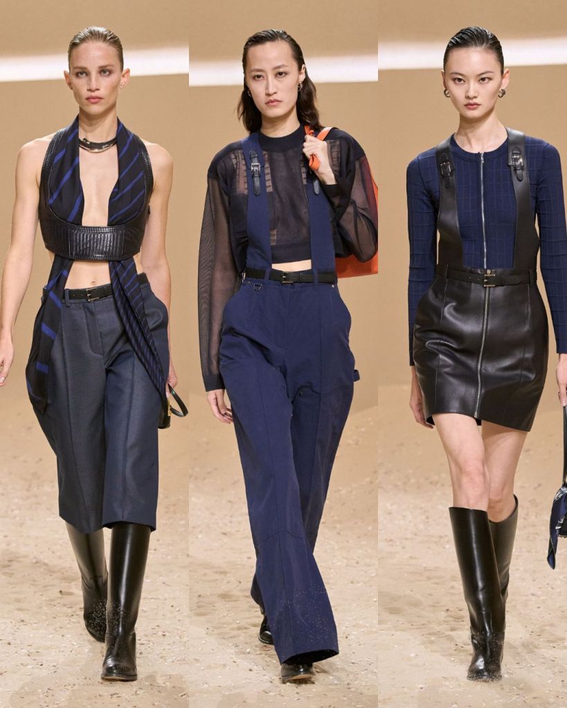 Vanhee took Hermès’s equestrian heritage and made it feel modern and seductive. The opening look—leather Bermuda shorts, a harness-style bra top, and a long leather-and-canvas coat—set the tone for what followed: powerful, refined, and quietly bold. There’s something “city baddie on a ranch” about it, where sophistication meets ruggedness. Each piece feels built to move, to exist in real life, yet with the polish only Hermès could deliver.