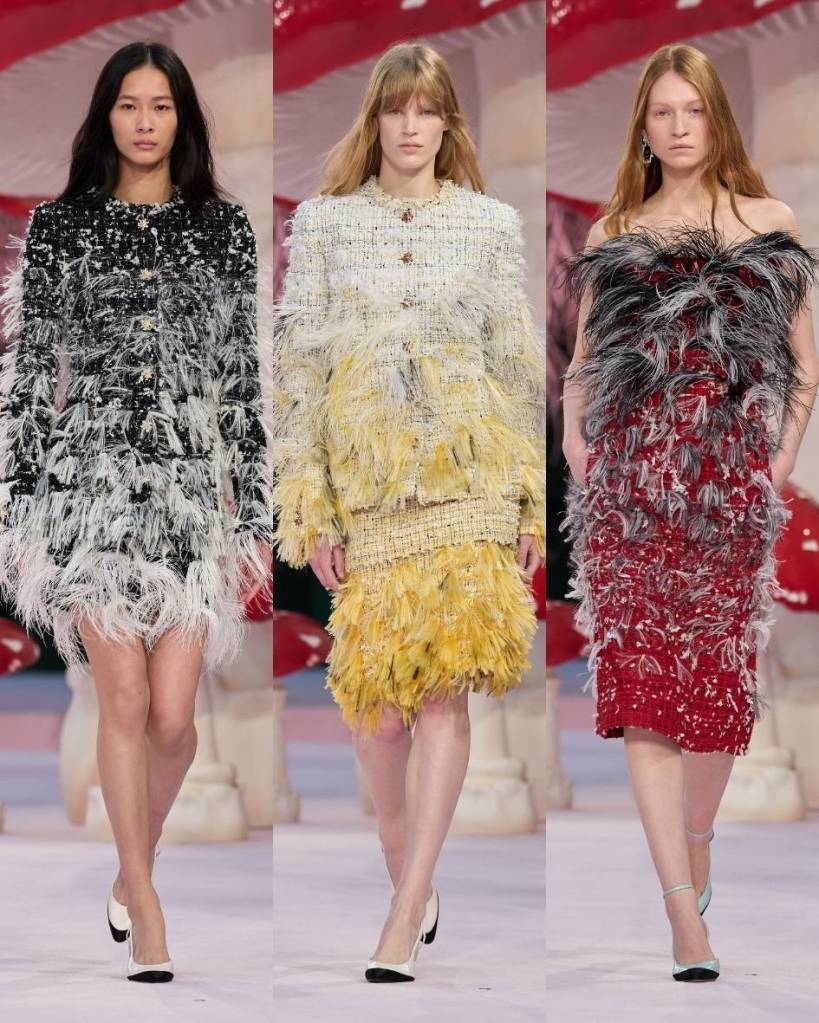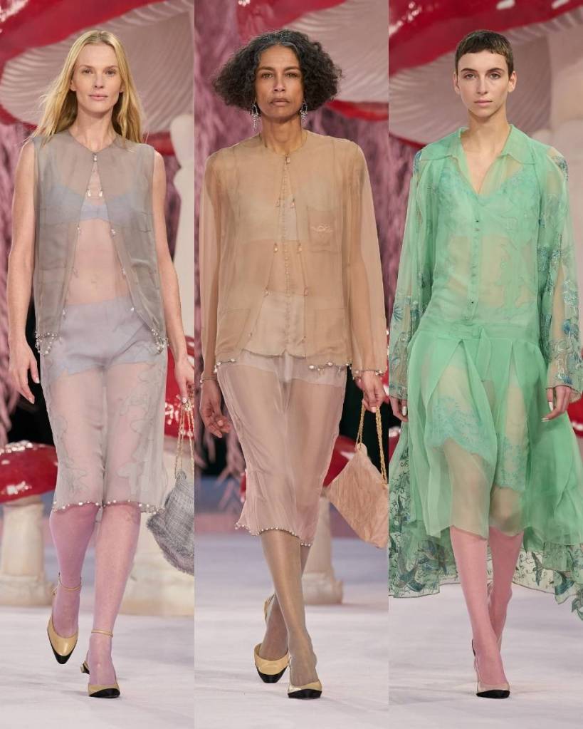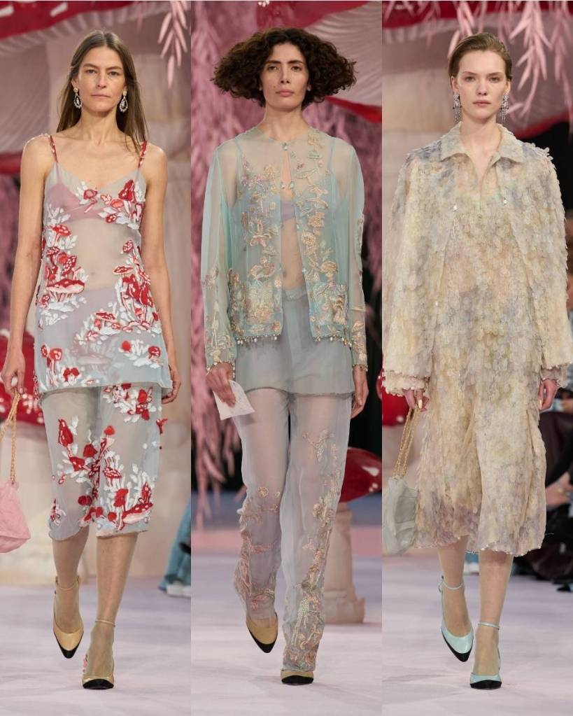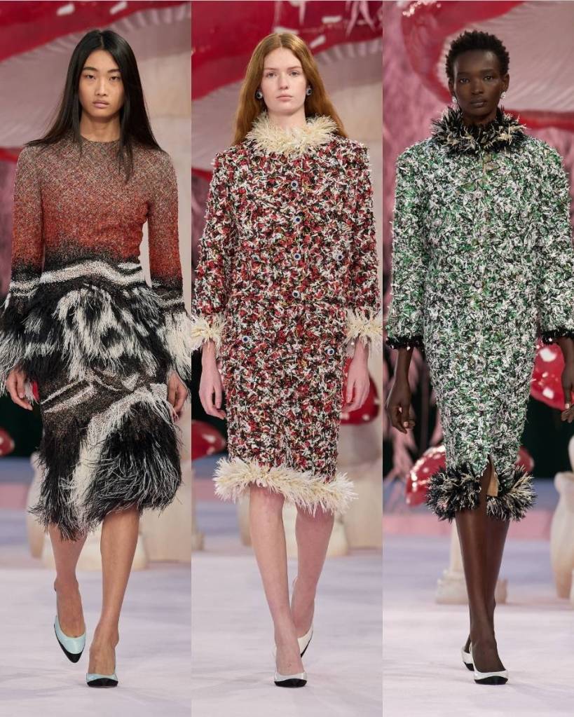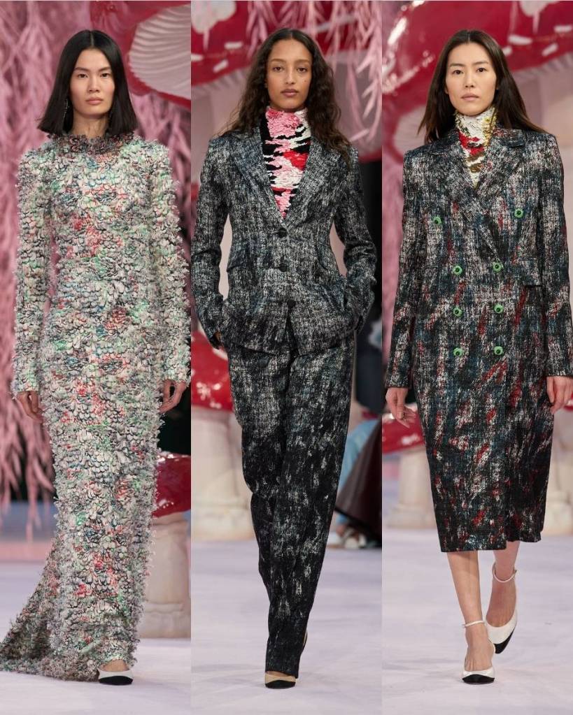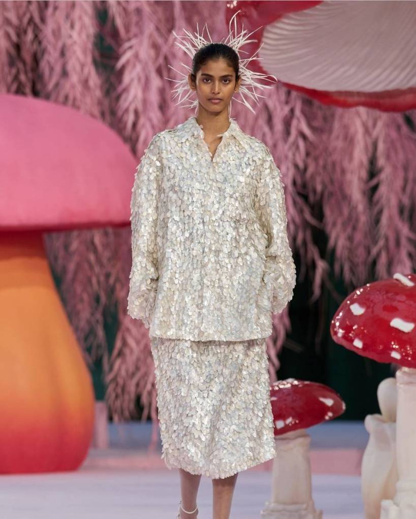 Set inside a dreamlike mushroom garden at the Grand Palais, the clothes were built to be looked at up close. Even better, to be held. Embroideries so light they felt unreal. Organza suits that looked like air had been tailored. Chains, pearls and buttons reimagined as something almost weightless. This was Chanel stripped of stiffness and ego.