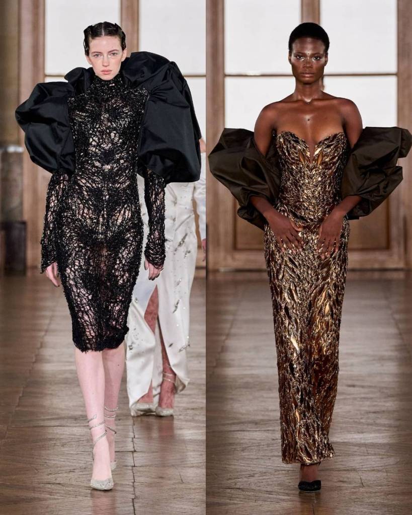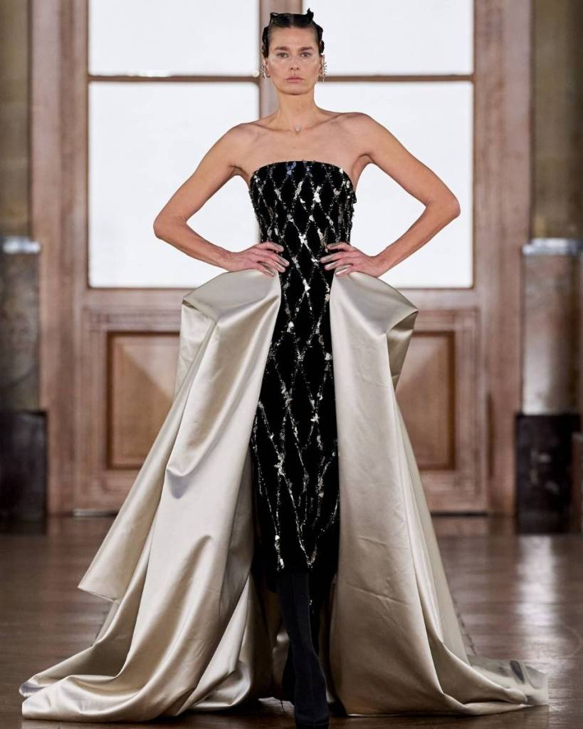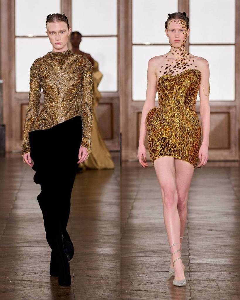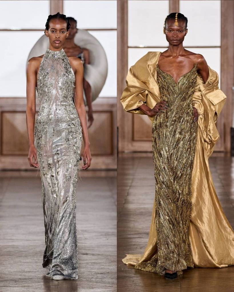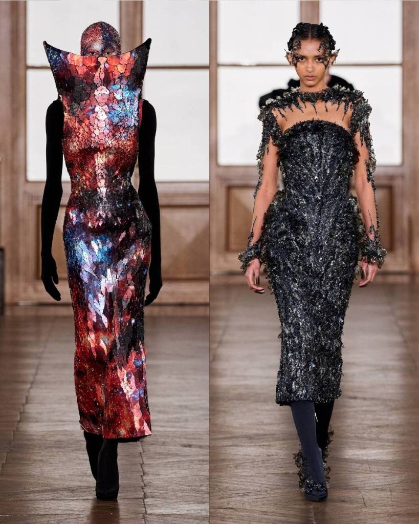 It began in darkness, with architectural black volumes referencing the Big Bang. Stark, controlled, dramatic in that very Gupta way. And then it expanded. Texture, life, emotion. Watch movement parts glinting as sequins, threadwork mapping energy, resin skins catching light like deep space. Technical, yes. Cold, never.