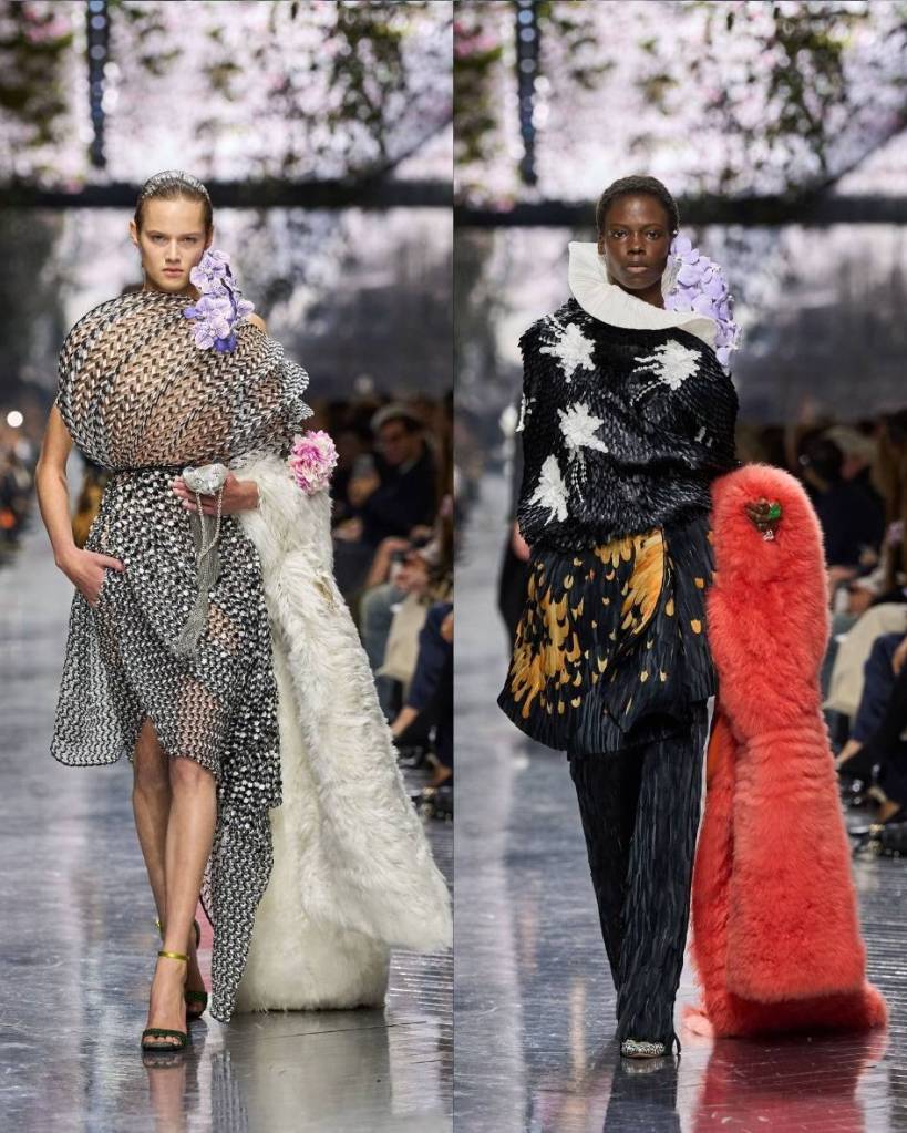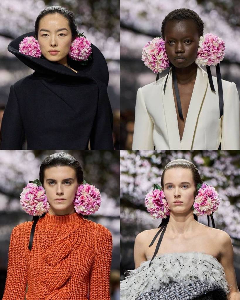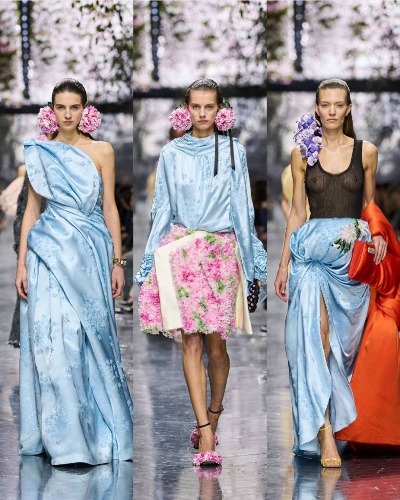 I will admit it. I was sceptical. The last few Dior collections have felt distant to me, intresting but disconnected. This was not that. This was impeccable. This was JWA absolutely killing it. Vivaldi swelling in the background, flowers balanced on shoulders and ears, silhouettes that felt sculptural but alive. Couture was alive. This collection had everything. Drama, craft, whimsy, intellect, emotion.