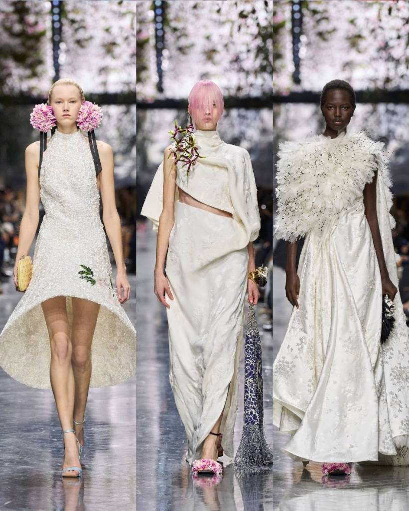 There was something about this that instantly took me back to Raf’s first couture for Dior in 2012. That debut is one of my all time favourite collections as well, truly iconic, and this felt like it was in conversation with it. The flowers as architecture, the purity of the gesture, the way restraint somehow made everything feel even more emotional.