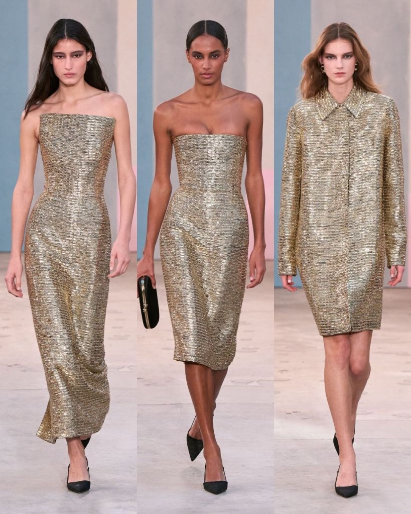 There was also a noticeable shift in how Gordon approached evening. Instead of traditional gowns, he focused more on cocktail dresses and sequined knit separates that felt easier and more modern. While these pieces were beautiful, it did leave you wanting just a bit more drama in terms of full eveningwear.