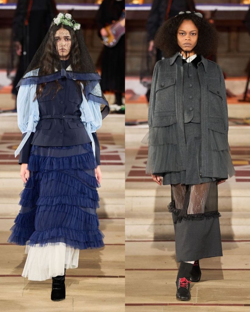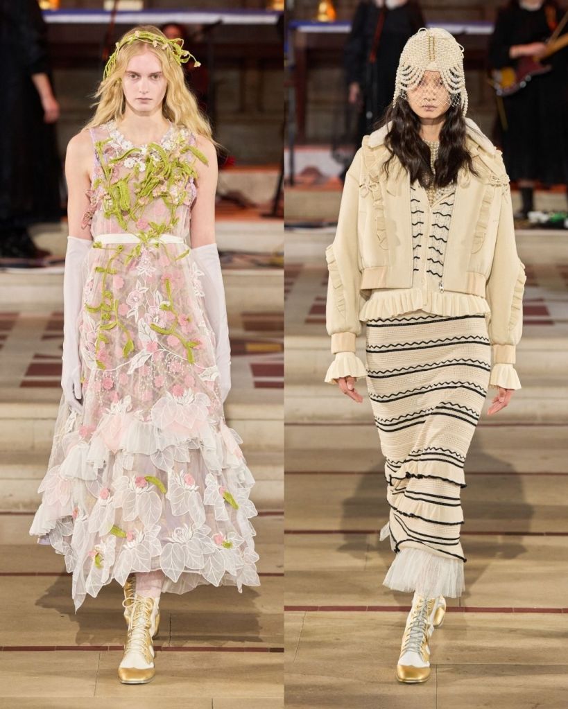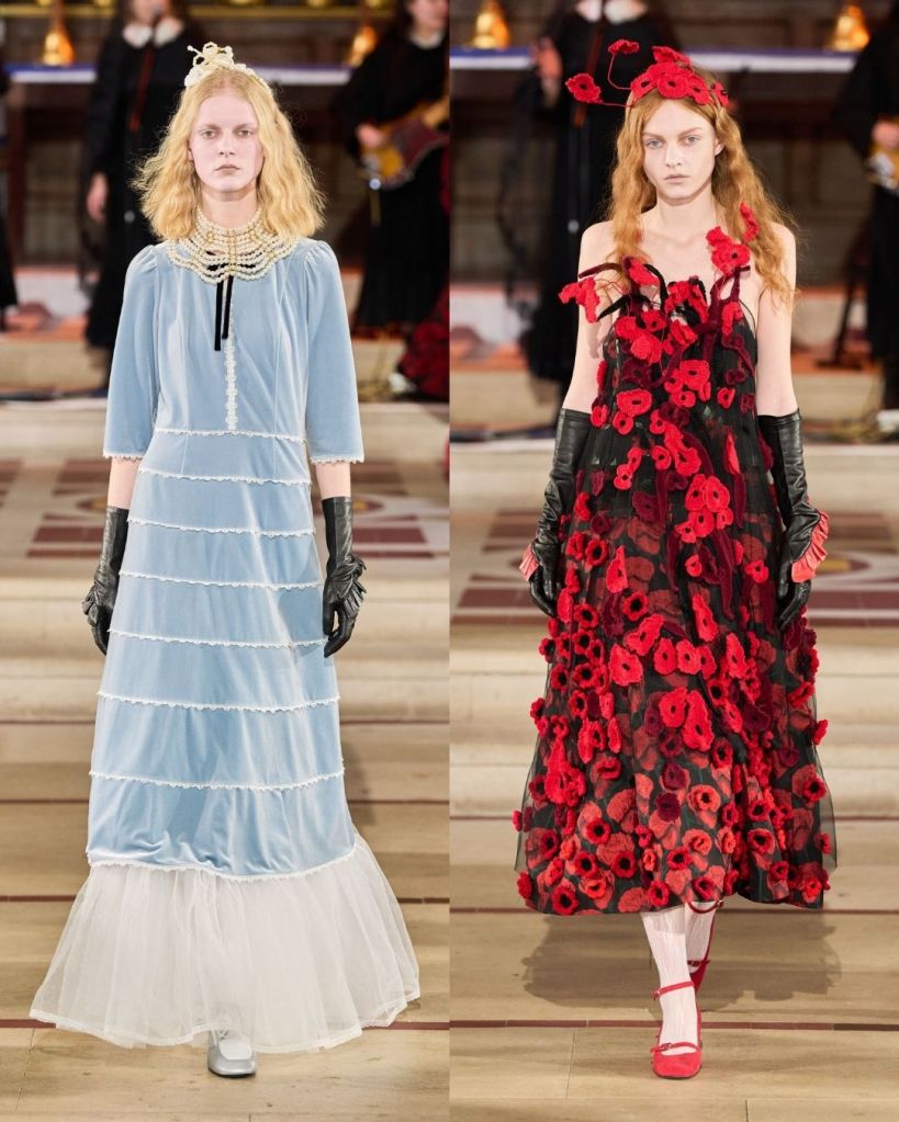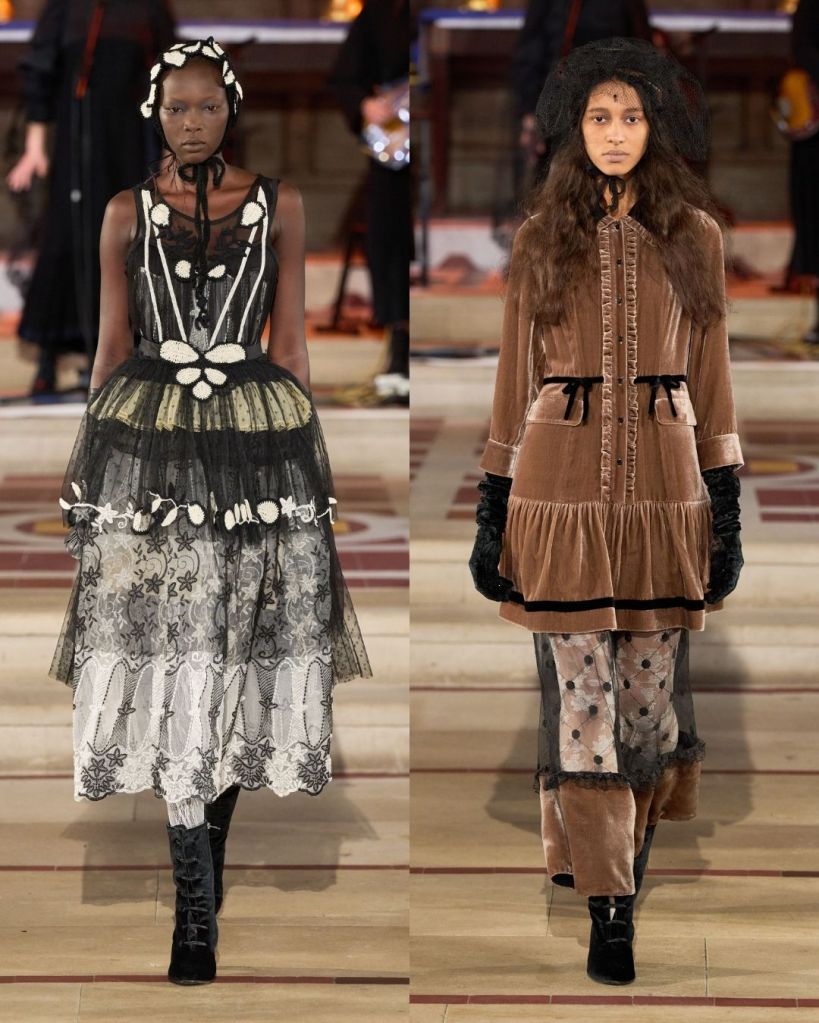 This Bora Aksu collection was inspired by Sukie, an 18th century barmaid whose tragic story has lingered in local legend for centuries. Aksu even stayed in the room where she supposedly once lived, tracing her final journey through the nearby Hellfire Caves. That sense of mystery hung quietly over the entire show.
