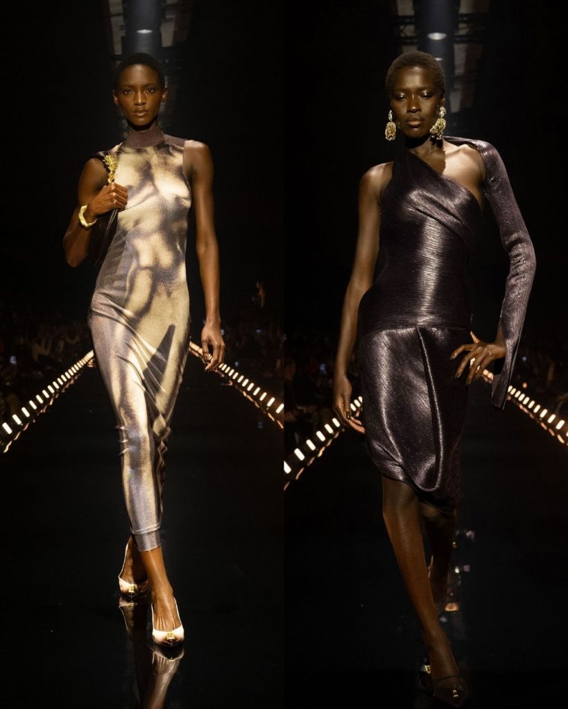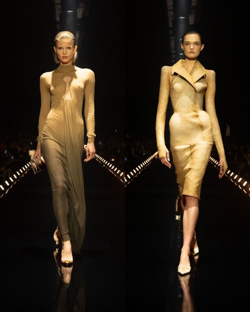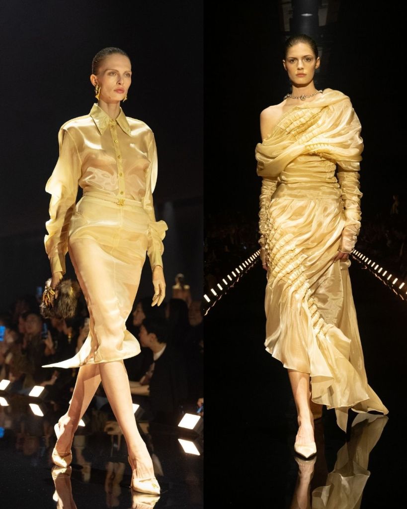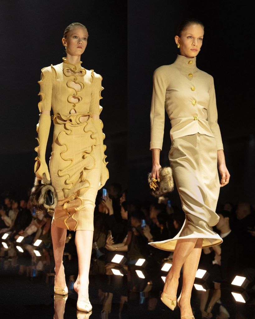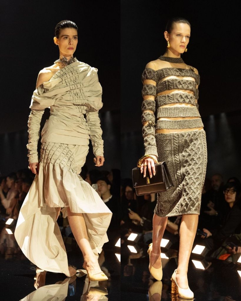 That was the most striking thing about this collection. Even when the silhouettes were distorted or slightly surreal, the pieces still felt real and strangely wearable. Roseberry described the collection as going “deeper” rather than bigger after couture, and that idea showed up in how he pushed texture, illusion, and shape without losing the human element.