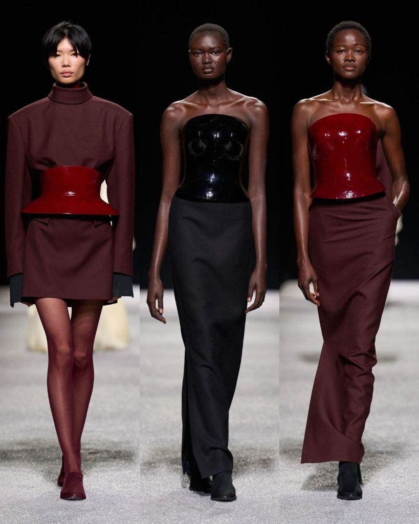 What stood out immediately was how cohesive everything felt. The clothes were simple, clean, and structured, yet still playful through texture and color. Rich jewel tones like oxblood, lemon, and deep orchid brought life to the otherwise restrained palette of black, grey, and white. The balance between strong structure and soft movement ran throughout the lineup.