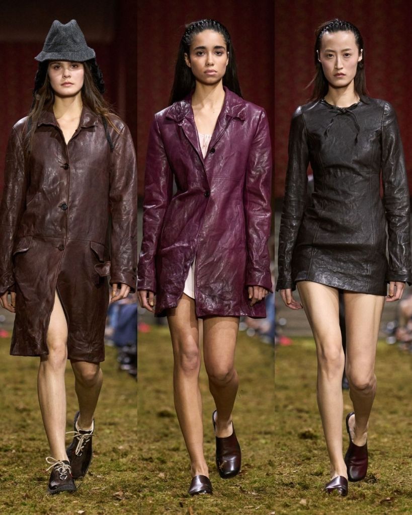 Fabric played a big role in creating that feeling. Washed cotton poplin, linen, and soft cashmere made the pieces feel almost worn-in already. Some leather coats looked intentionally rumpled, while shearling linings and cozy jackets added warmth. The clothes often sat close to the body, reinforcing the idea that fashion here was about protecting and acknowledging the person wearing it.