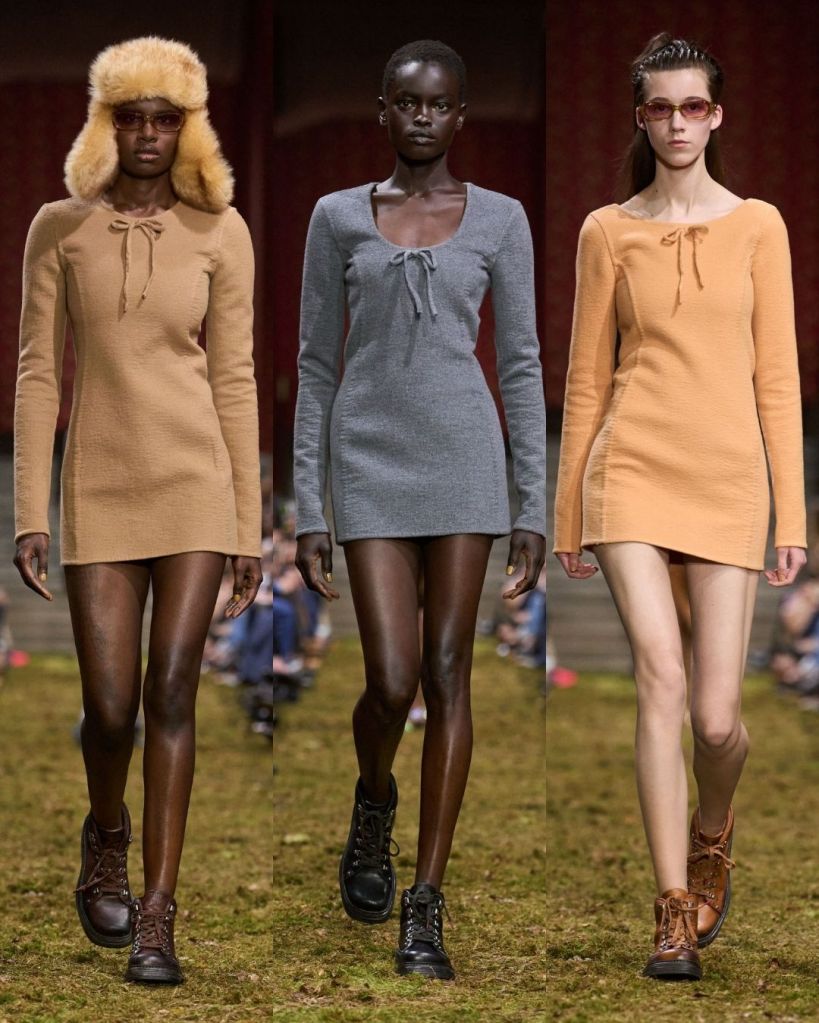 Miu Miu often thrives on a certain kind of girly playful chaos, but this time Miuccia Prada took a noticeably calmer route. The collection was built around a simple idea: the smallness of the human body compared to the vastness of the world. It sounds abstract, but on the runway it translated into something surprisingly grounded.