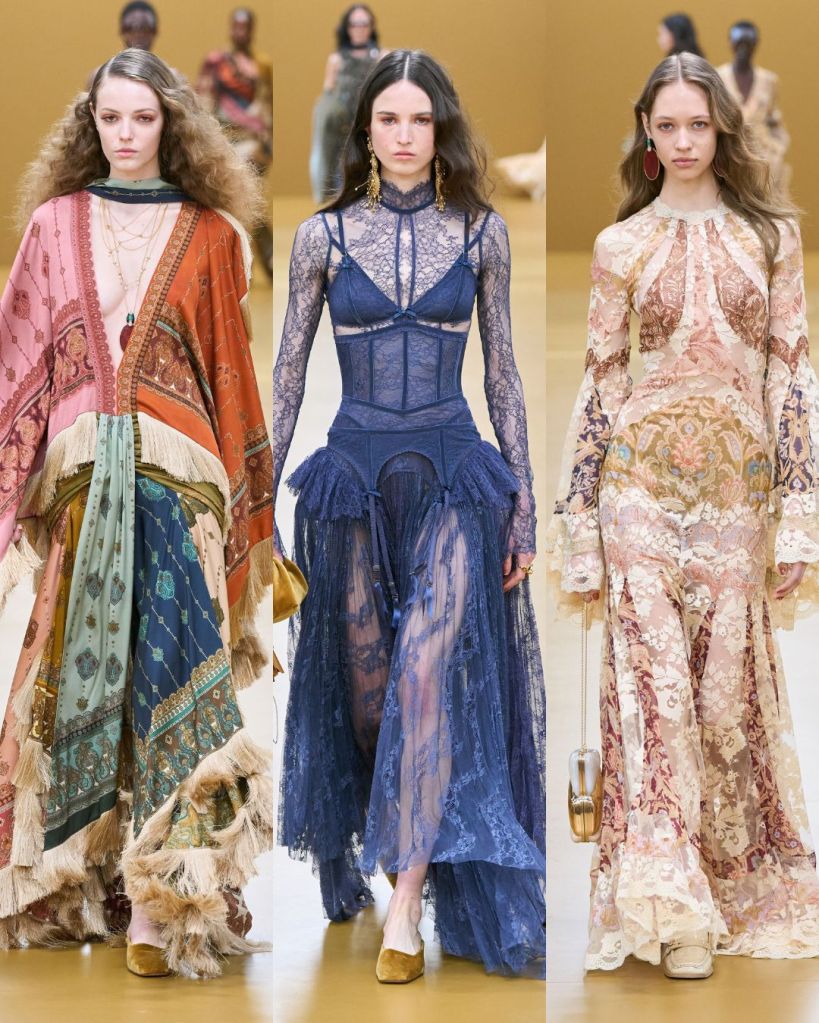 Zimmermann’s clothes are often described as pretty, but this lineup showed there is more going on underneath. The femininity here is not fragile or overly delicate. It feels confident and full of movement. The dresses especially carried that spirit. They had a dreamy, ultra boho feel, but they also looked powerful and alive when the models walked.