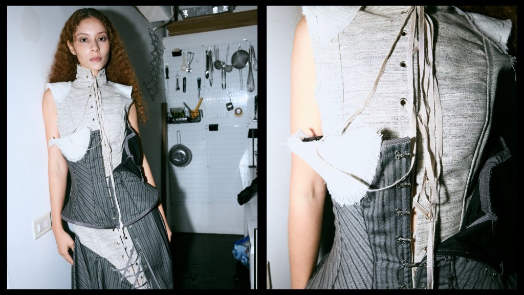 This level of detail grounds the collection. It ensures that even the most experimental pieces still feel intentional. “Even when a piece begins from a conceptual or emotional starting point, it gets resolved through construction, fit, and silhouette,” she explained. That balance is what makes the work feel complete, even when it looks deliberately unfinished.