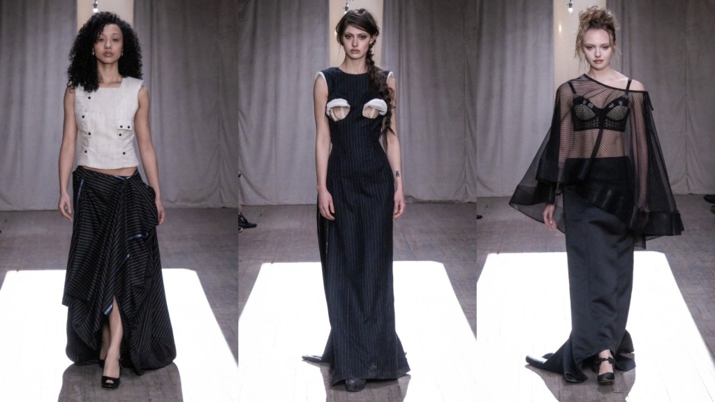 Emotionally, the collection sits in a darker space, but it never feels heavy in a way that is overwhelming. Sorotzkin described it as a response to “pain and instability, both personal and collective,” which adds another layer to how the garments are read. They are not just aesthetic choices. They are responses.