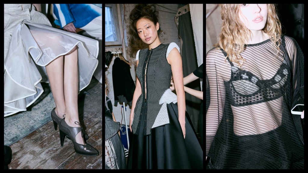 Sorotzkin’s background plays a big role in how precisely this idea is executed. She started sewing at a young age, influenced by her grandfather, a pattern maker in Paris. That early understanding of construction comes through in how the garments are built. She described pattern-making as something that works “almost like puzzle pieces,” and you can see that logic across the collection. Nothing feels random. Even the deconstruction feels engineered.